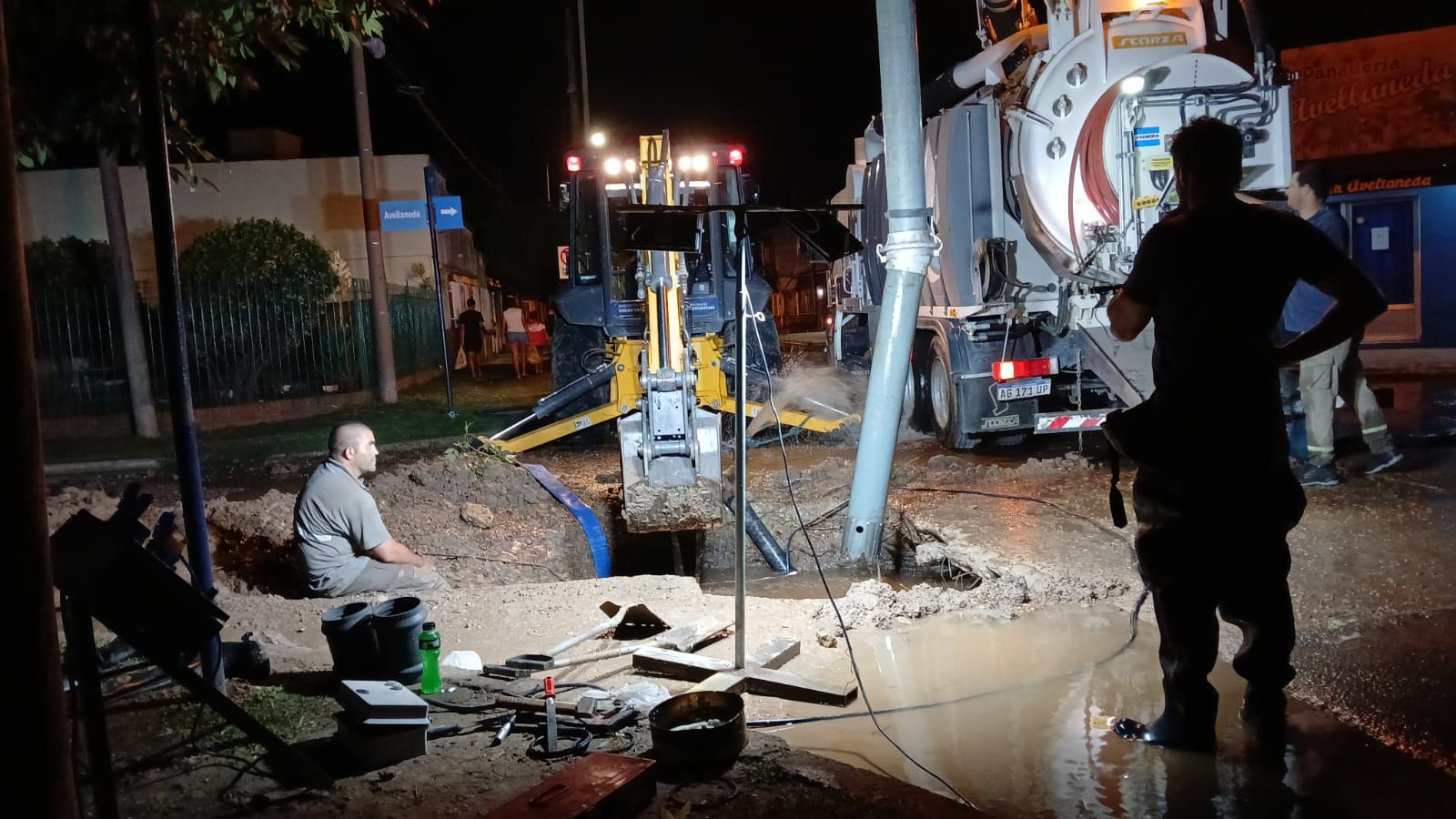 Una falla en un conducto de 140 milímetros obligó a desplegar un operativo específico este jueves por la tarde en la intersección de Concordia y Avellaneda. El inconveniente se detectó alrededor de las 17 y demandó casi cinco horas de labor ininterrumpida hasta restablecer la estanqueidad del sistema.