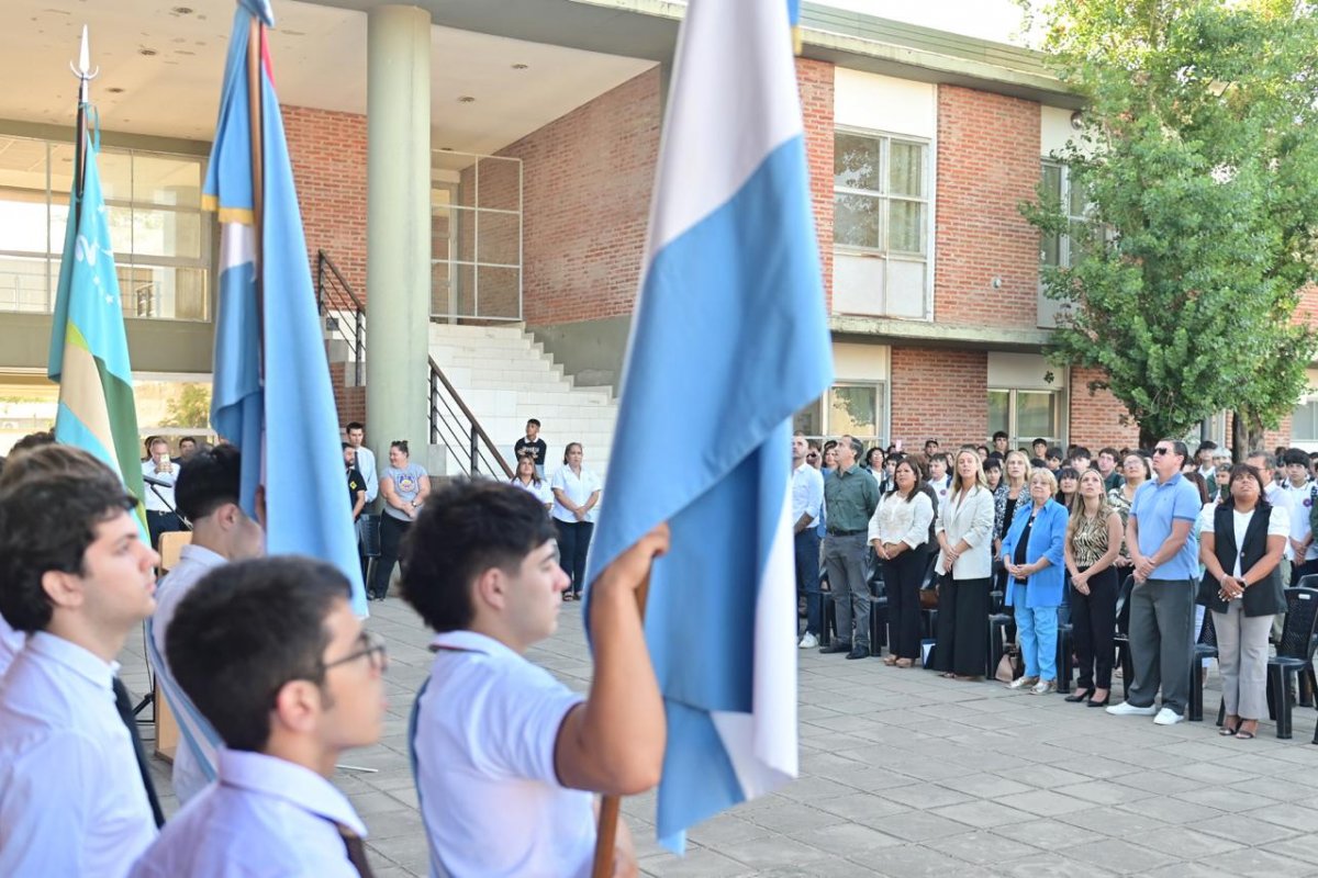 Uno de los momentos más especiales fue cuando Gabriel Hernández, además de interpretar las estrofas oficiales, compartió una canción de su autoría dedicada a la institución. Contó que la letra nació años atrás, durante un viaje a Paraná, y que la escribió pensando en la escuela. La interpretación despertó aplausos y reforzó el sentido de identidad de la comunidad educativa.