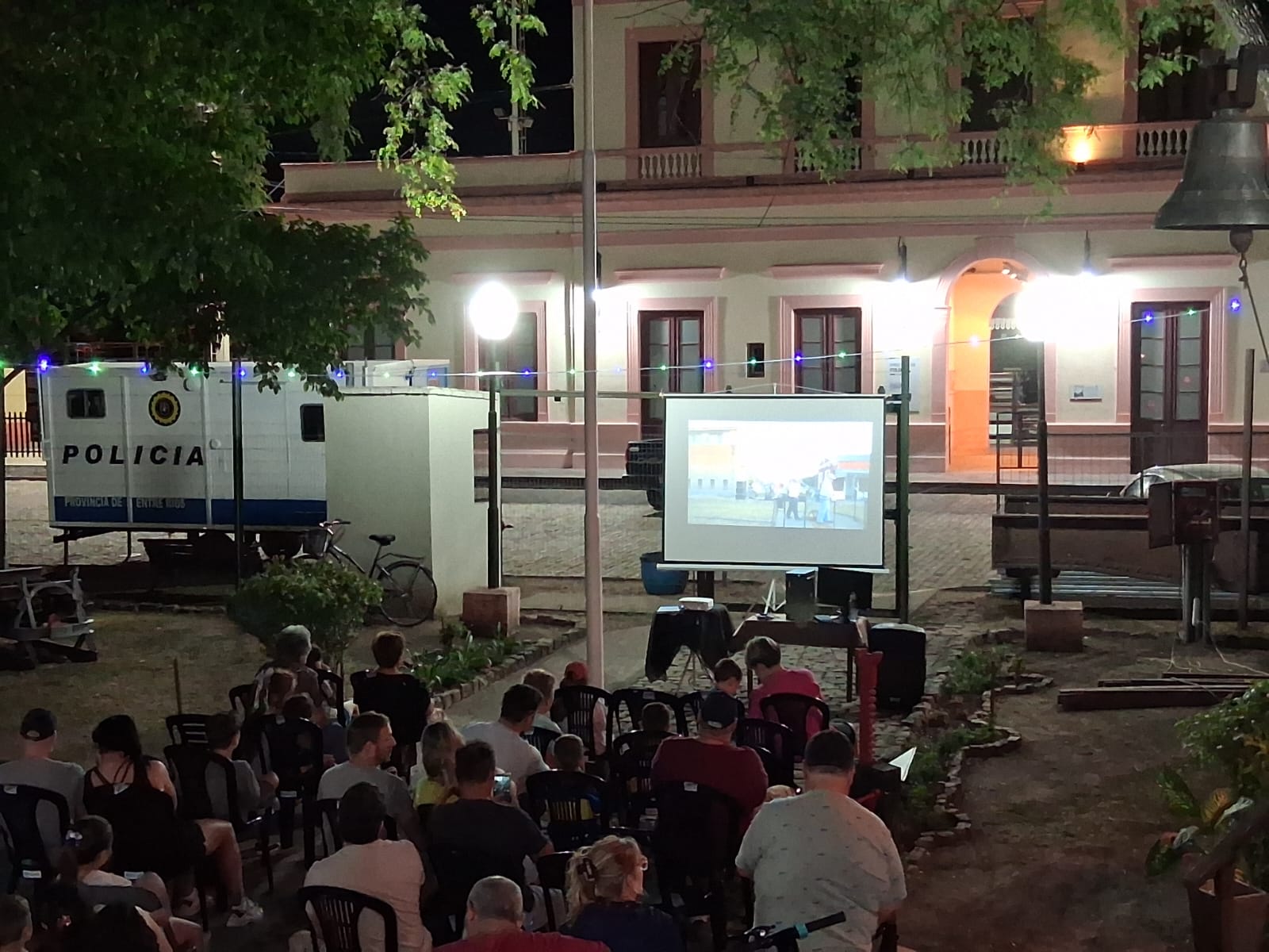 Una actividad audiovisual al aire libre recordó la historia del sistema ferroviario argentino y reunió a vecinos en un espacio patrimonial local, dentro de una propuesta cultural impulsada por distintas áreas municipales.
