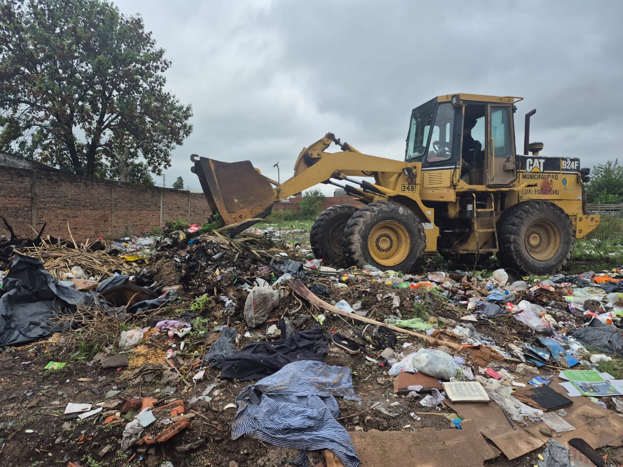 El predio volvió a recibir una importante carga de residuos domiciliarios, restos de poda, plásticos y escombros, lo que obligó a desplegar nuevamente personal y maquinaria para restablecer el orden del espacio.