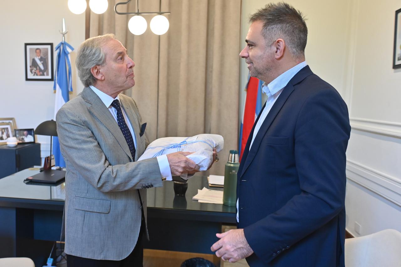 Previamente, Fischer mantuvo un encuentro con el presidente municipal, Mauricio Davico, quien le regaló un poncho, obsequio muy valorado por “Pipo Pescador”.