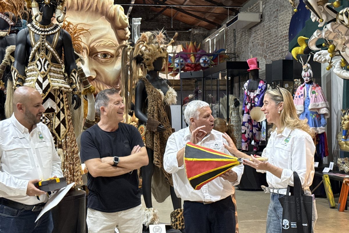 Durante la visita, la delegación expresó su admiración por la calidad del espacio y el nivel de desarrollo artístico alcanzado. “Gualeguaychú es un lugar para conocer, tiene una riqueza patrimonial importante; sobre todo, me ha llamado la atención el patrimonio del Cementerio”, destacó el alcalde Lopera Posada. Asimismo, valoró especialmente el paralelismo con el Museo del Carnaval de Barranquilla, señalando la relevancia cultural y la inversión sostenida en materia de investigación, conservación y difusión que ambas ciudades destinan a sus celebraciones populares. Como gesto de identidad local, se les obsequió una corneta murguera, símbolo del carnaval, mientras que los visitantes participaron activamente probándose vestuarios e interactuando con instrumentos típicos, en una experiencia que reforzó el intercambio cultural.