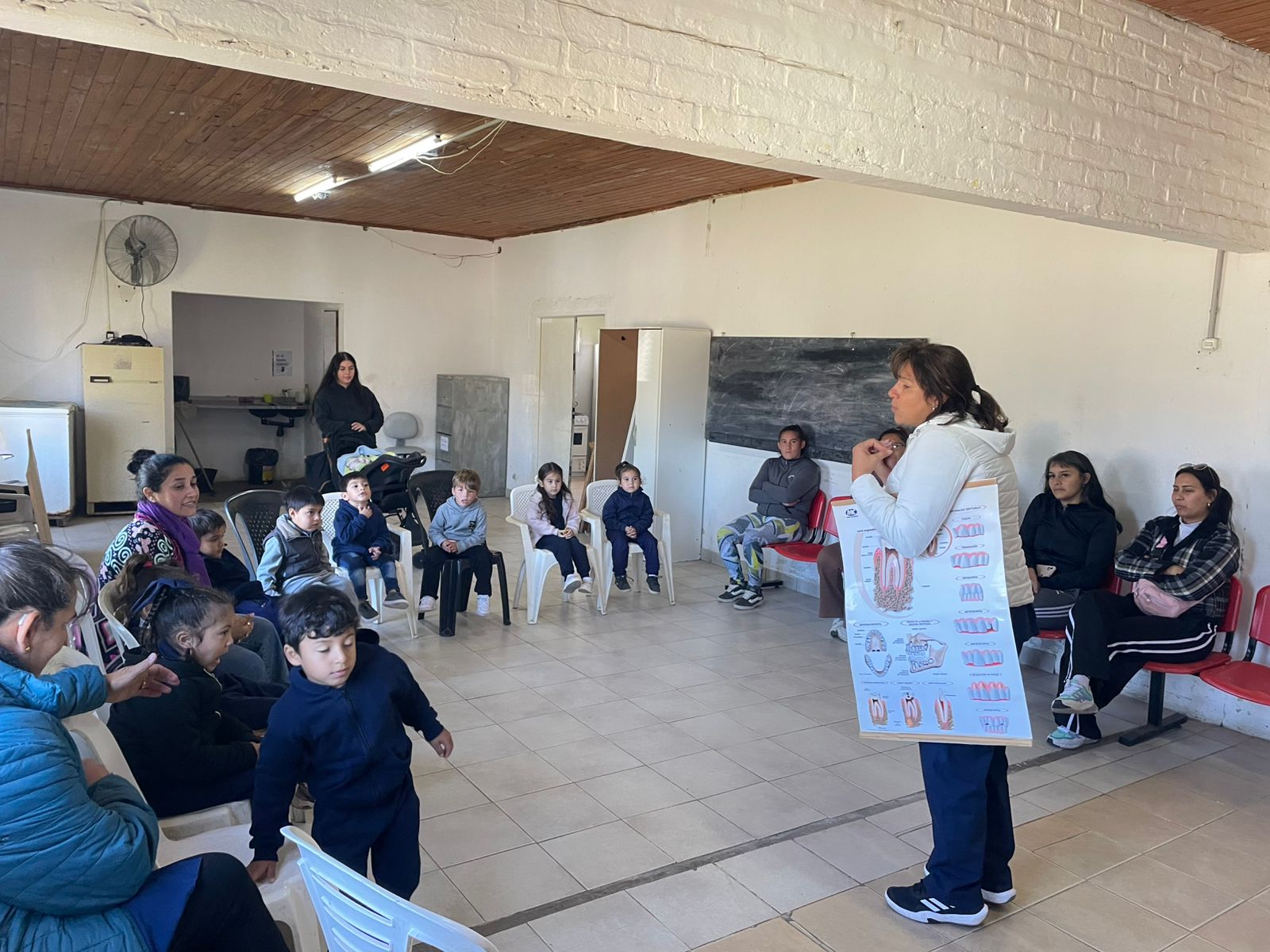 Durante el encuentro se abordaron temas vinculados al cuidado de la salud bucal, la importancia del cepillado diario y las visitas periódicas al odontólogo, así como también aspectos fundamentales de la alimentación saludable, con énfasis en la incorporación de hábitos que favorezcan el crecimiento y desarrollo.