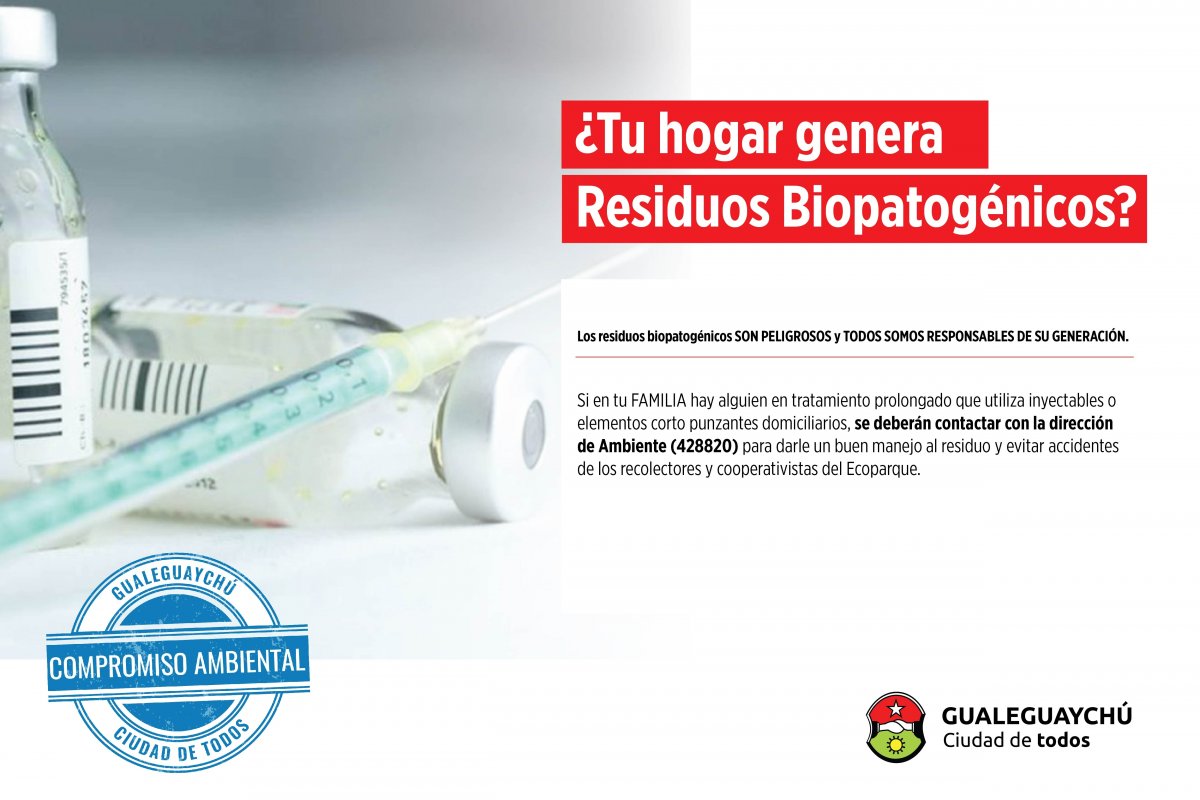 La Municipalidad de Gualeguaychú solicita a los vecinos que tienen tratamientos médicos prolongados con colocación de inyecciones, que se contacten con la dirección de Ambiente para coordinar la correcta disposición de estos residuos.