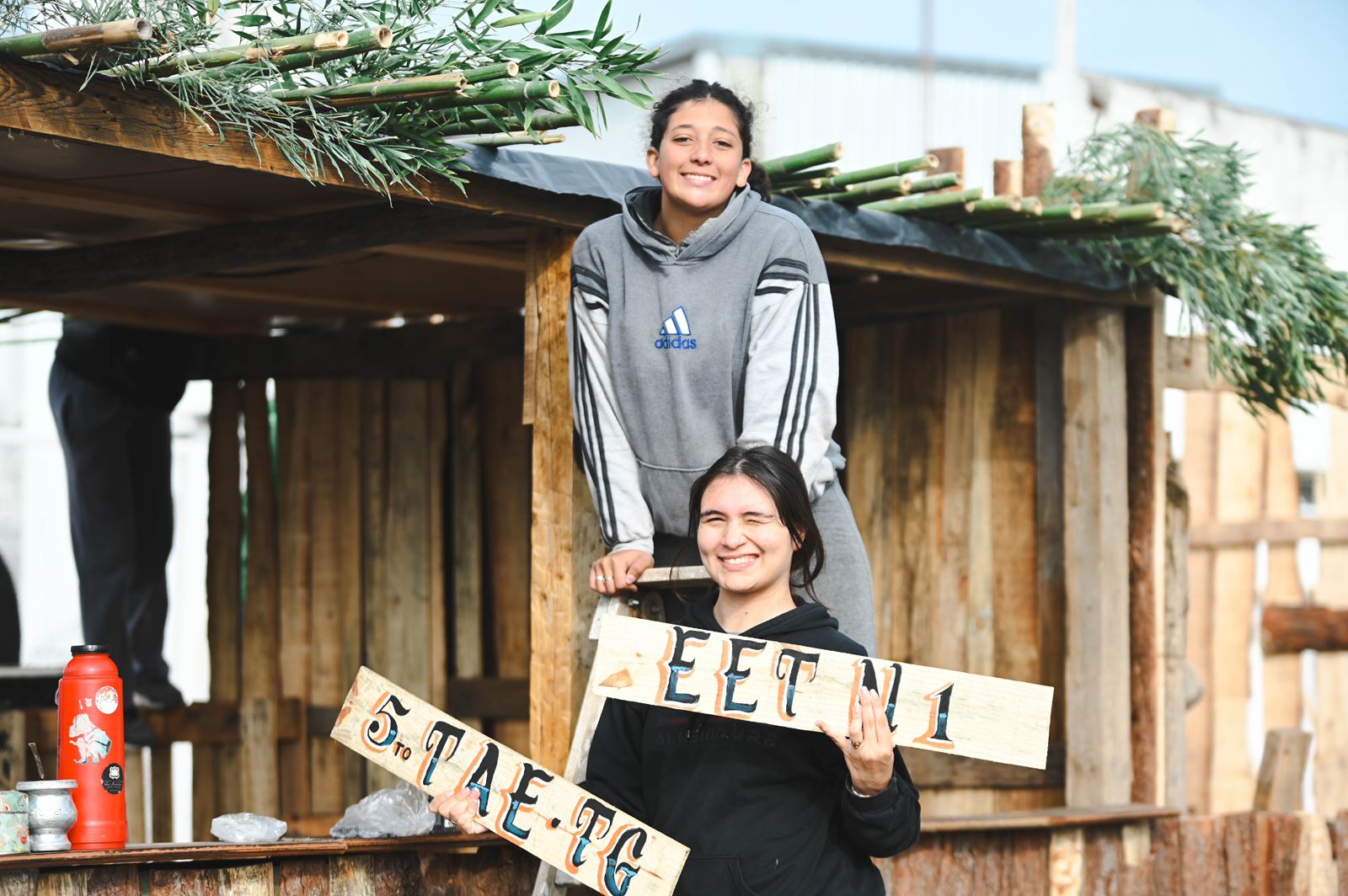 Estudiantes, con la invaluable colaboración de muchos padres, comenzaron a montar los stands en las categorías Pulperías y Libre, bajo la supervisión de la responsable de Protocolo y Ceremonial,