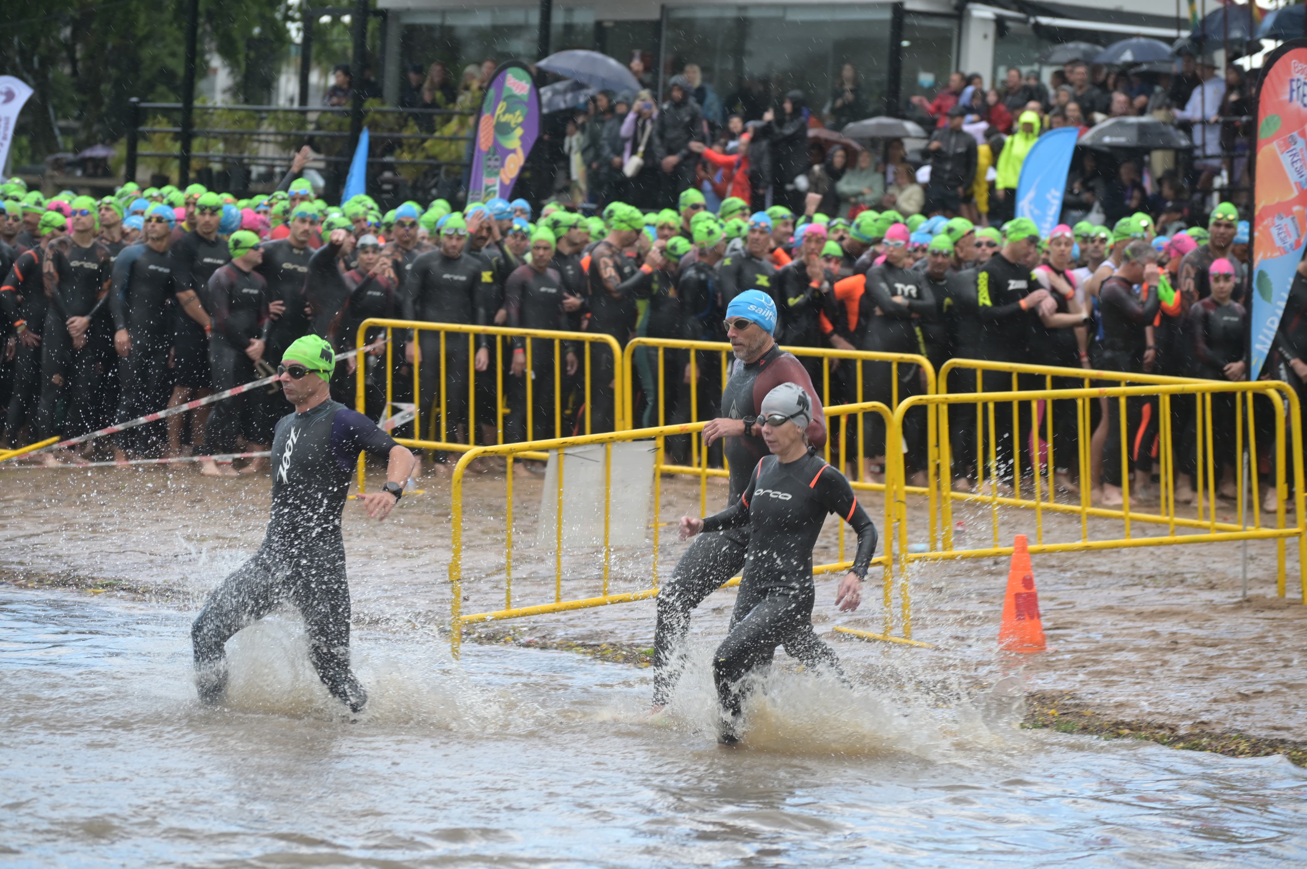 Con una ligera demora por las condiciones climáticas que llevaron a activar los protocolos previstos por la organización en caso de lluvia, el Ironman 5150 Gualeguaychú 2025 comenzó a las 9 de la mañana. La jornada se abrió con la interpretación de la canción Aurora y el Himno Nacional Argentino, antes de que los atletas, a las 9.30 h, iniciaran la primera etapa de natación en aguas abiertas del río Gualeguaychú.