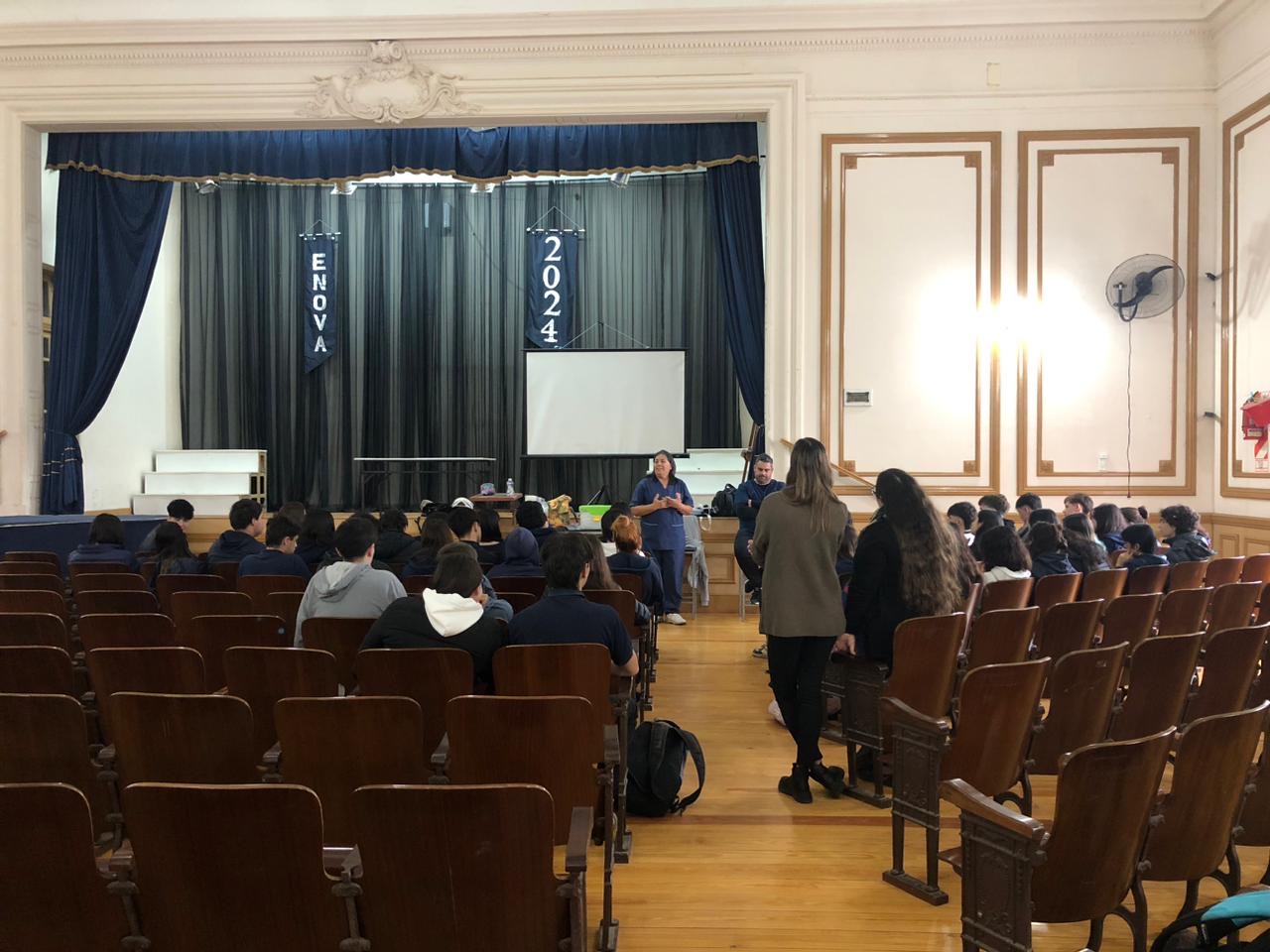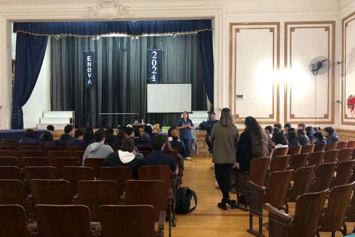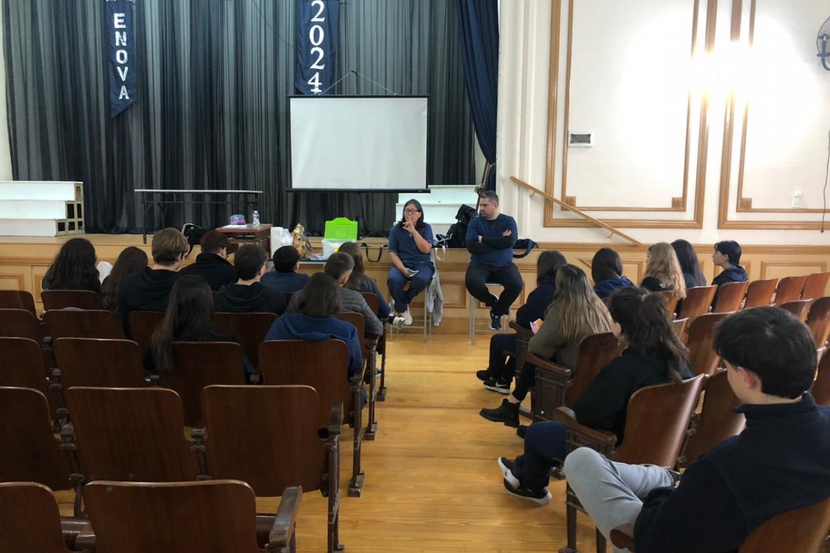 Los contenidos de los talleres son dictados por personal de los CAPS y acompañados por docentes de cada institución. En el caso del taller dictado en la ENOVA, los profesionales a cargo fueron, la licenciada en Obstetricia Florencia Rodríguez, y el coordinador de los Centros de Salud, Martín Gallop.