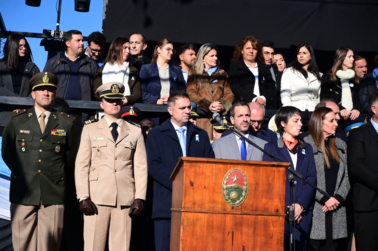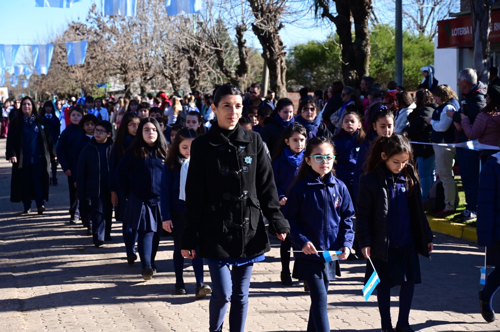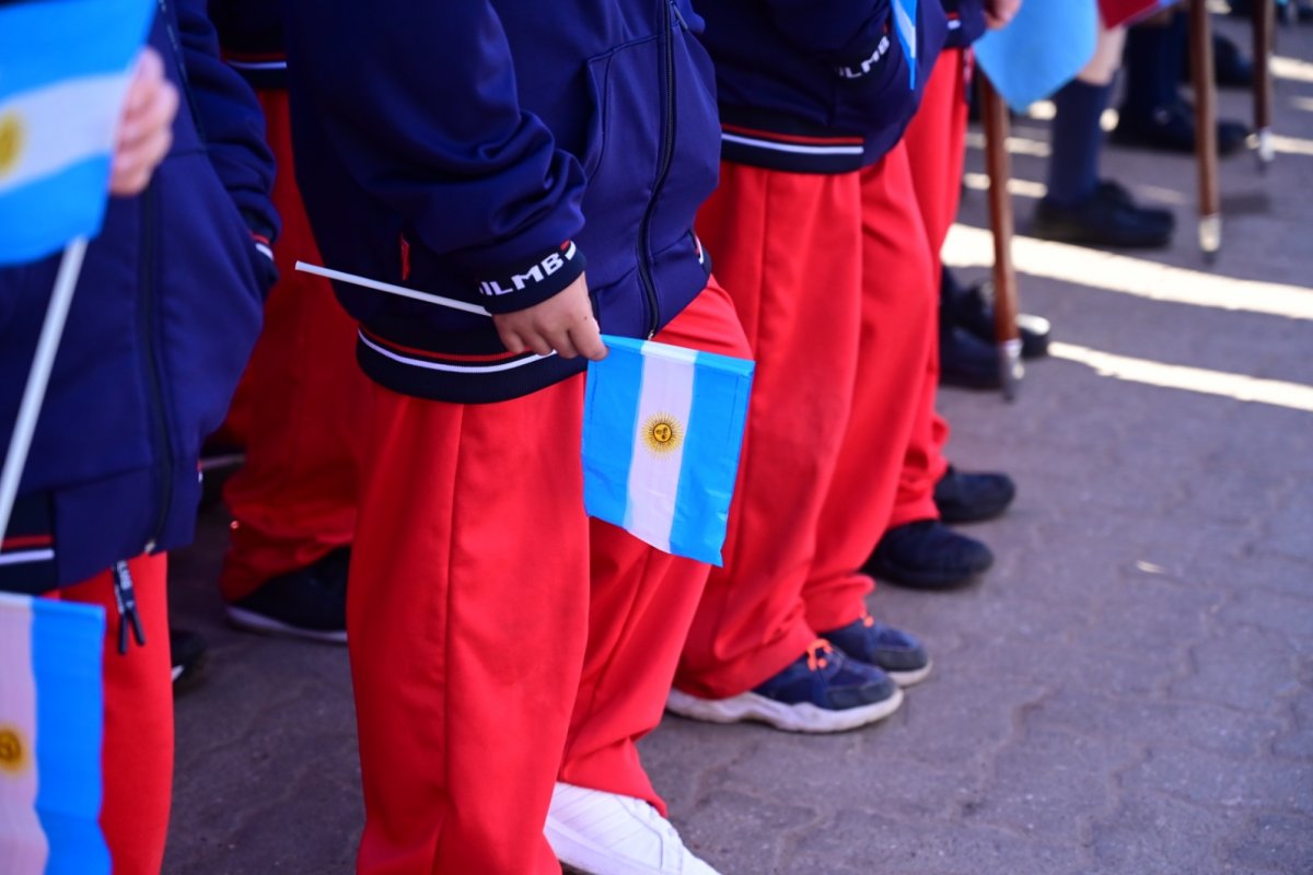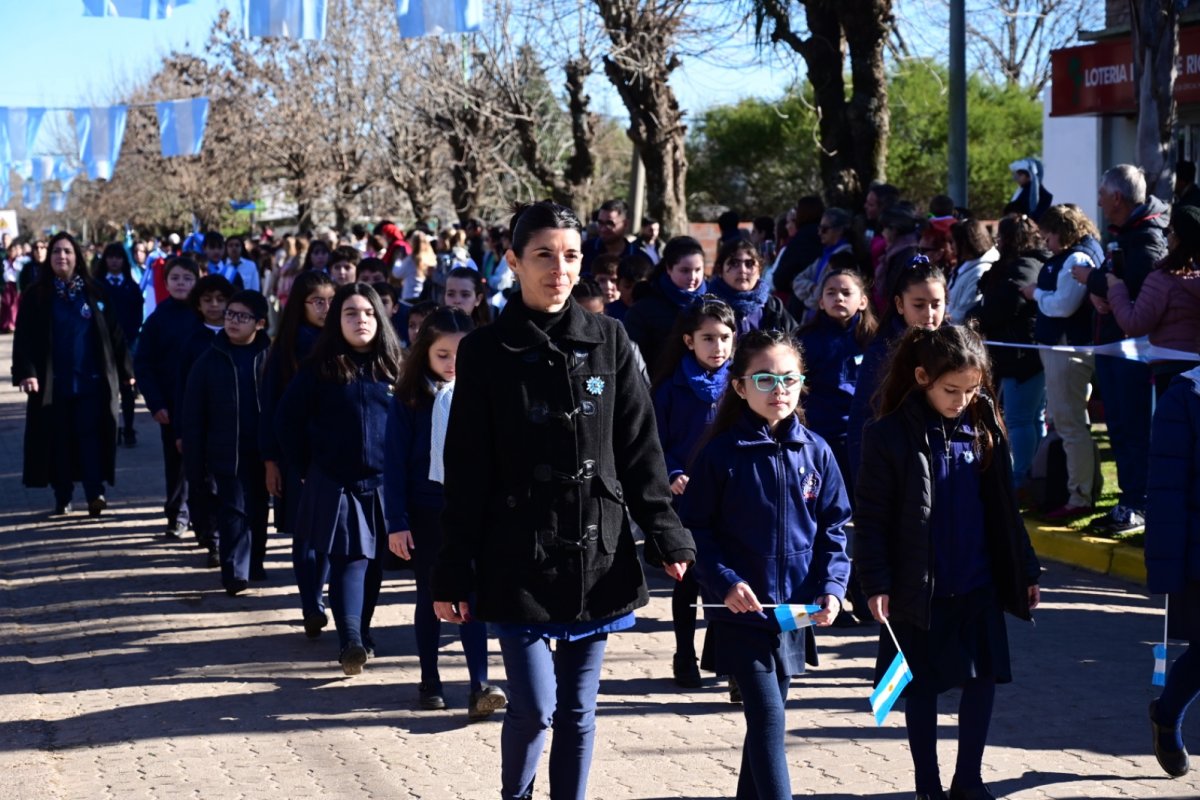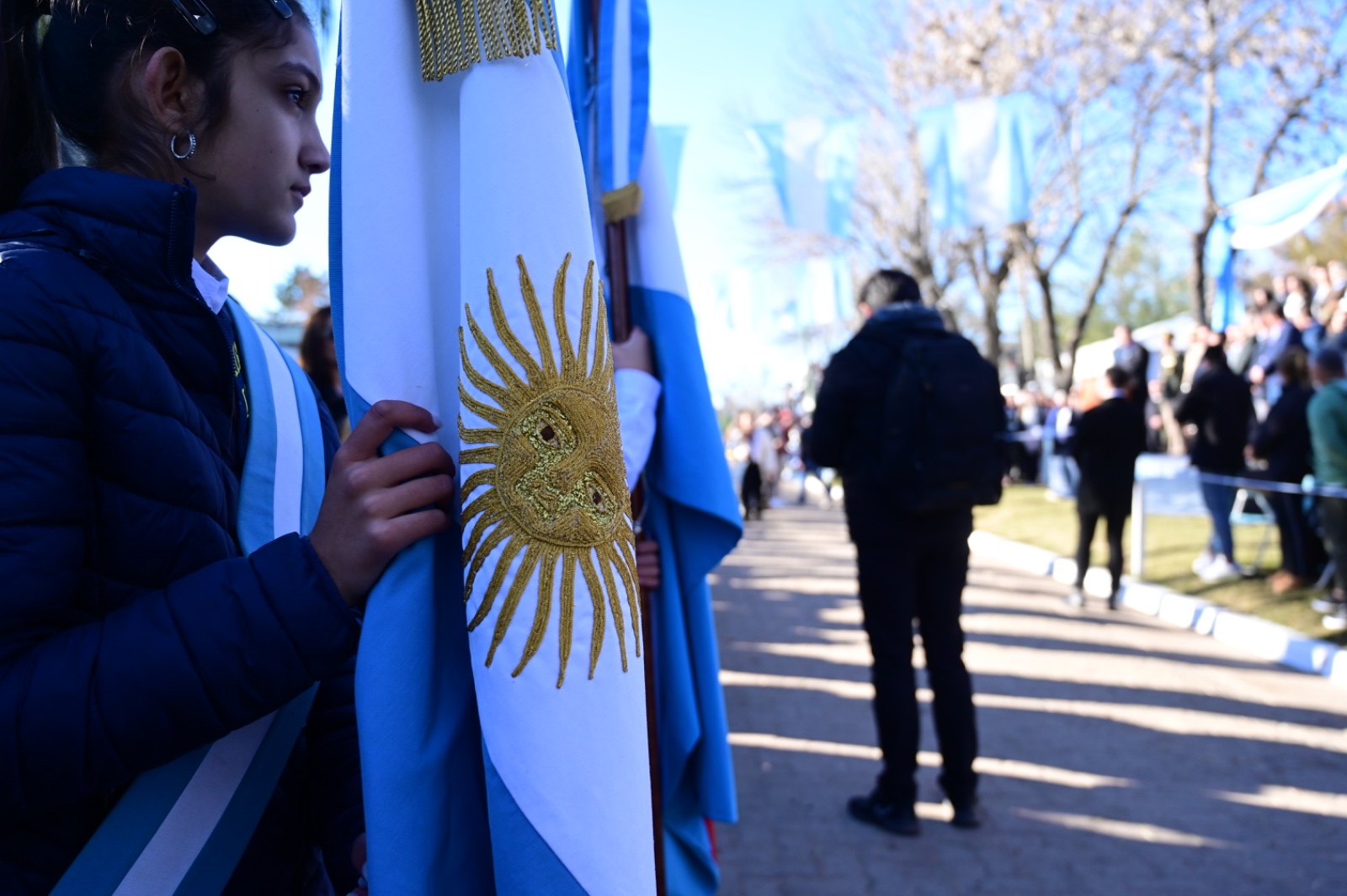 Luego, 200 alumnos de cuarto grado de escuelas de la localidad realizaron la Promesa de Lealtad a la Bandera, ceremonia encabezada por el veterano de Malvinas Ricardo Dearti, en conjunto con la directora departamental de Escuelas, Natalia Báez. Tras la promesa, se entregaron recordatorios conmemorativos a cada uno de los protagonistas.
