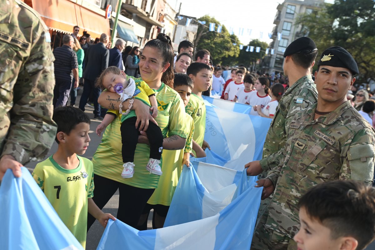 El espíritu patriótico volvió a inundar las calles de Gualeguaychú con el despliegue de la imponente Bandera del Bicentenario, que cuenta con más de mil metros de longitud. Luego del acto protocolar, la Bandera del Bicentenario se lució en la calle 25 de Mayo, desde Plaza General Manuel Belgrano hasta Plaza San Martín, brindando a todos los vecinos la oportunidad de admirar esta muestra de patriotismo y colaboración comunitaria. El desfile fue encabezado por una formación del Ejército, Gendarmería y Bomberos, seguida por los colegios e instituciones que se sumaron a esta celebración.