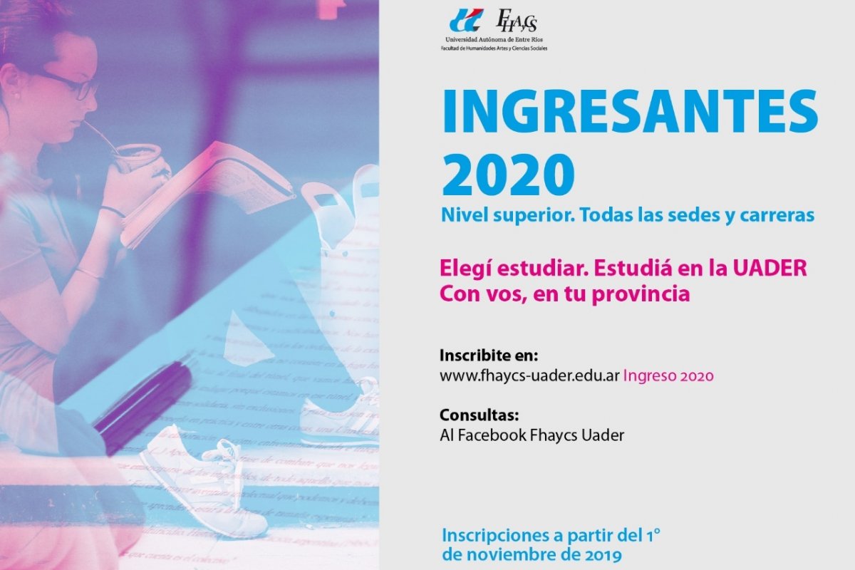 Las inscripciones se realizan a través de la página web de la facultad: http://fhaycs-uader.edu.ar/.